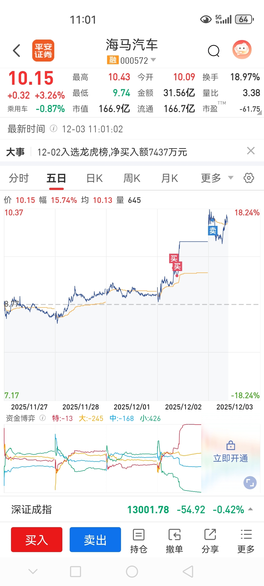 幸亏昨天走了,进了海马,今天把海马出了,华建亏的补回来了