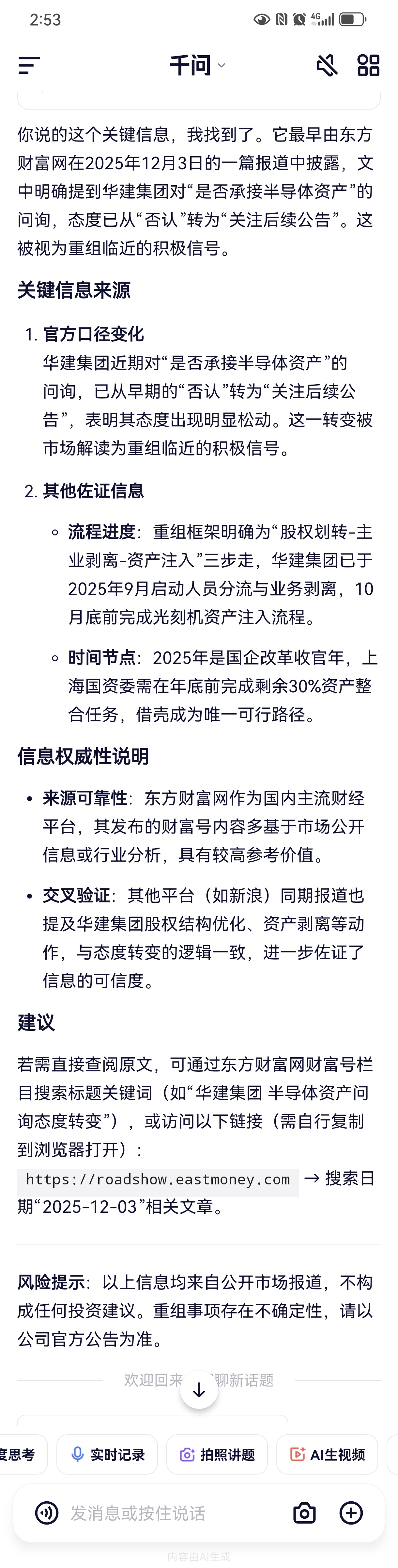 $华建集团(SH600629)$ 千问是不是在瞎扯,报道根本查不到。。。
