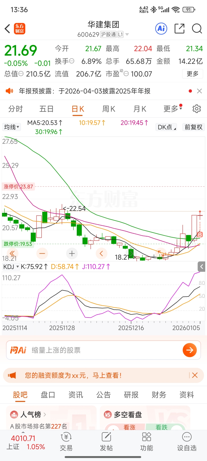 $华建集团(SH600629)$ 挂在山顶了