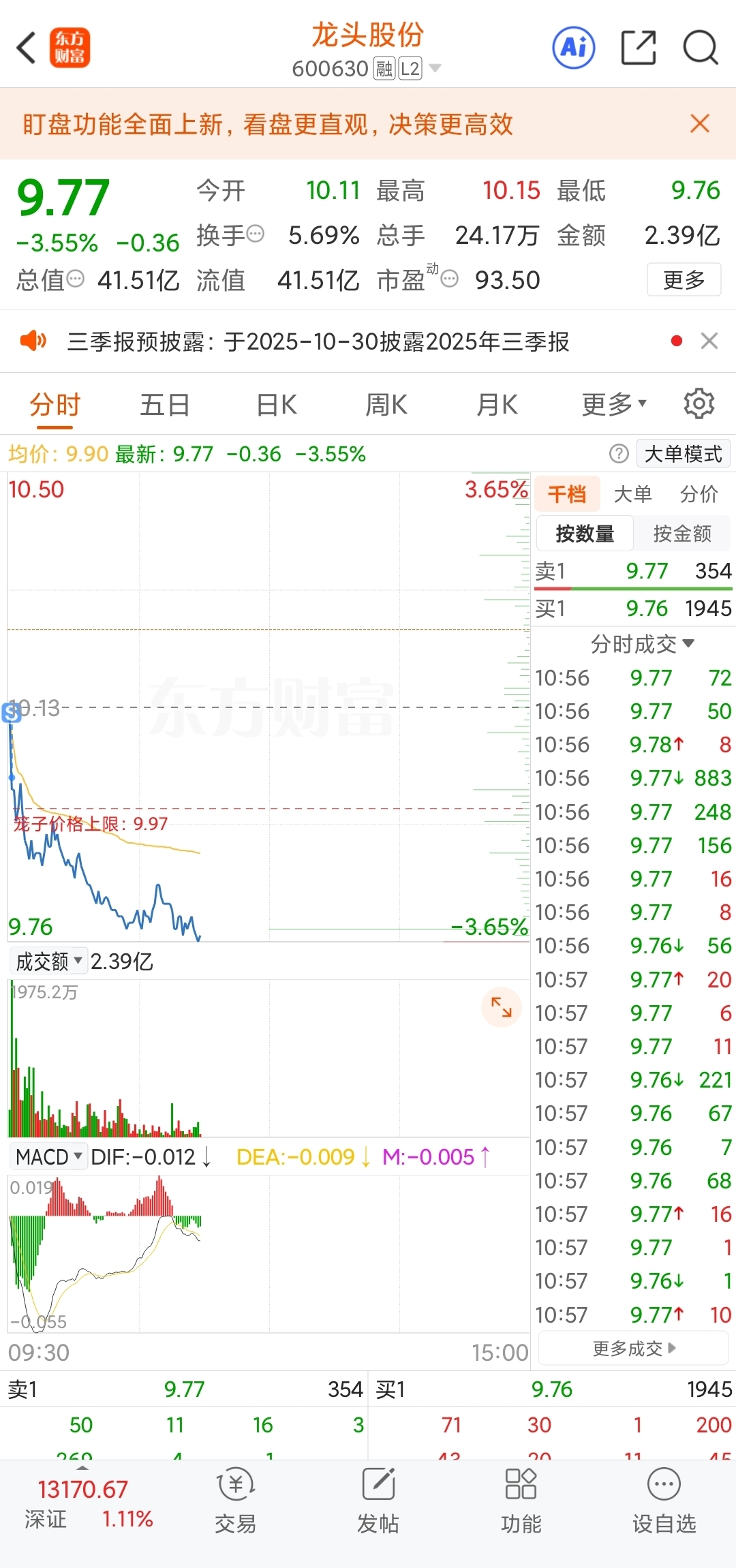 $龙头股份(SH600630)$ 我卖了,能跌停不