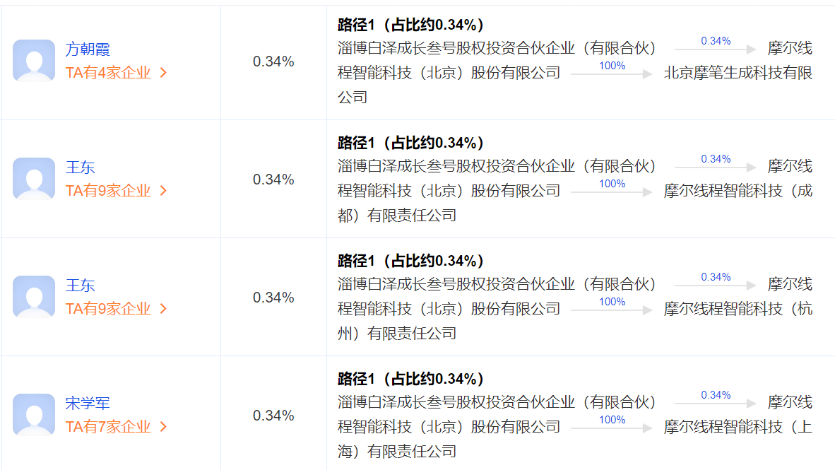 这公司新进来的2大流通股东上海江南建筑规划咨询有限公司和上海江南建筑设计院(集团)有限公司是一起的,然后上海江南建筑设计院(集团)有限公司通过淄博白泽成长叁号股权投资合伙企业(有限合伙)竟然持有摩尔线程北京母公司0.34%的股份,是不是企查查弄错了,400亿的和而泰也就那点股份,这公司有这么高股份?有些神奇