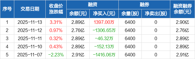 龙头股份:融资净买入1397万元,融资余额2.89亿元(11-13)