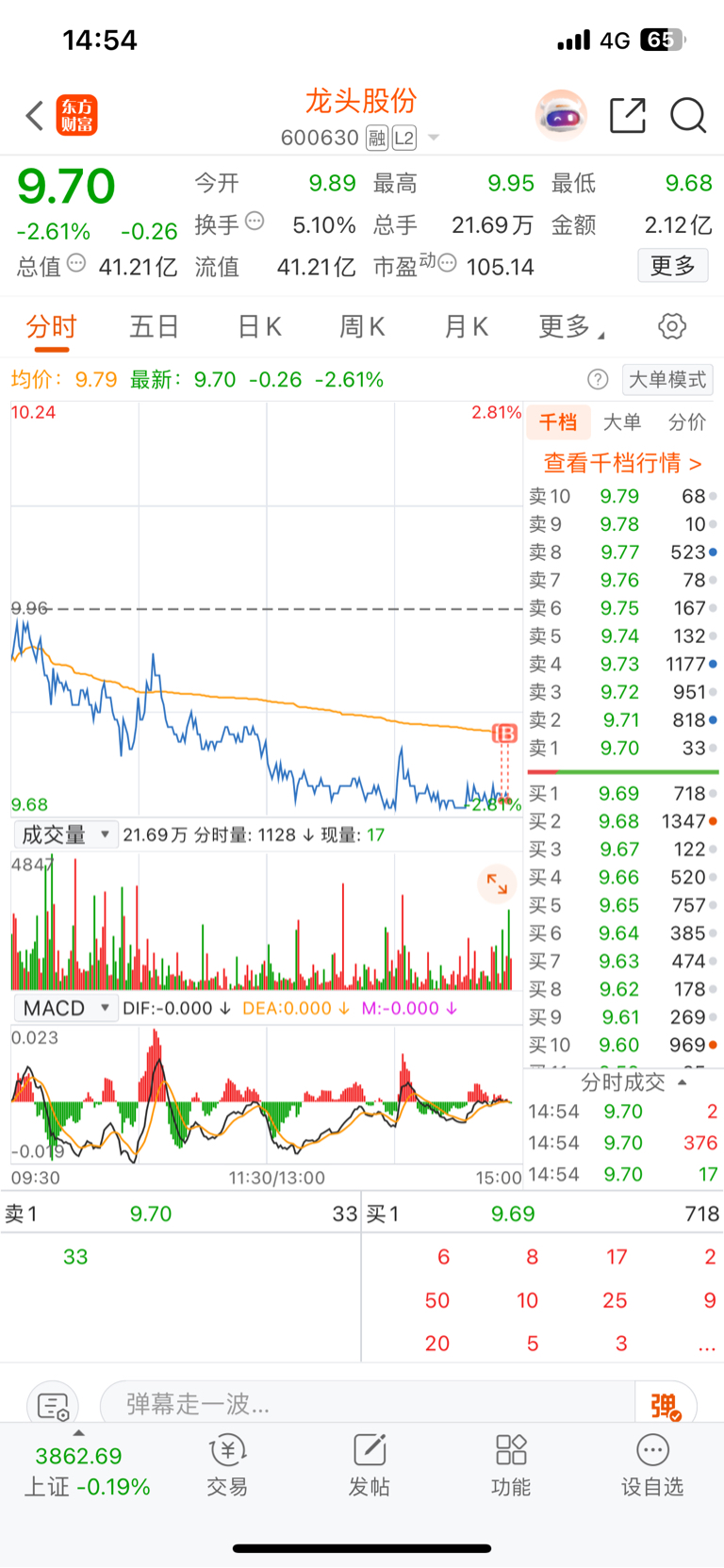 $龙头股份(SH600630)$ 昨天尾盘买了点,现在要不要T出去?