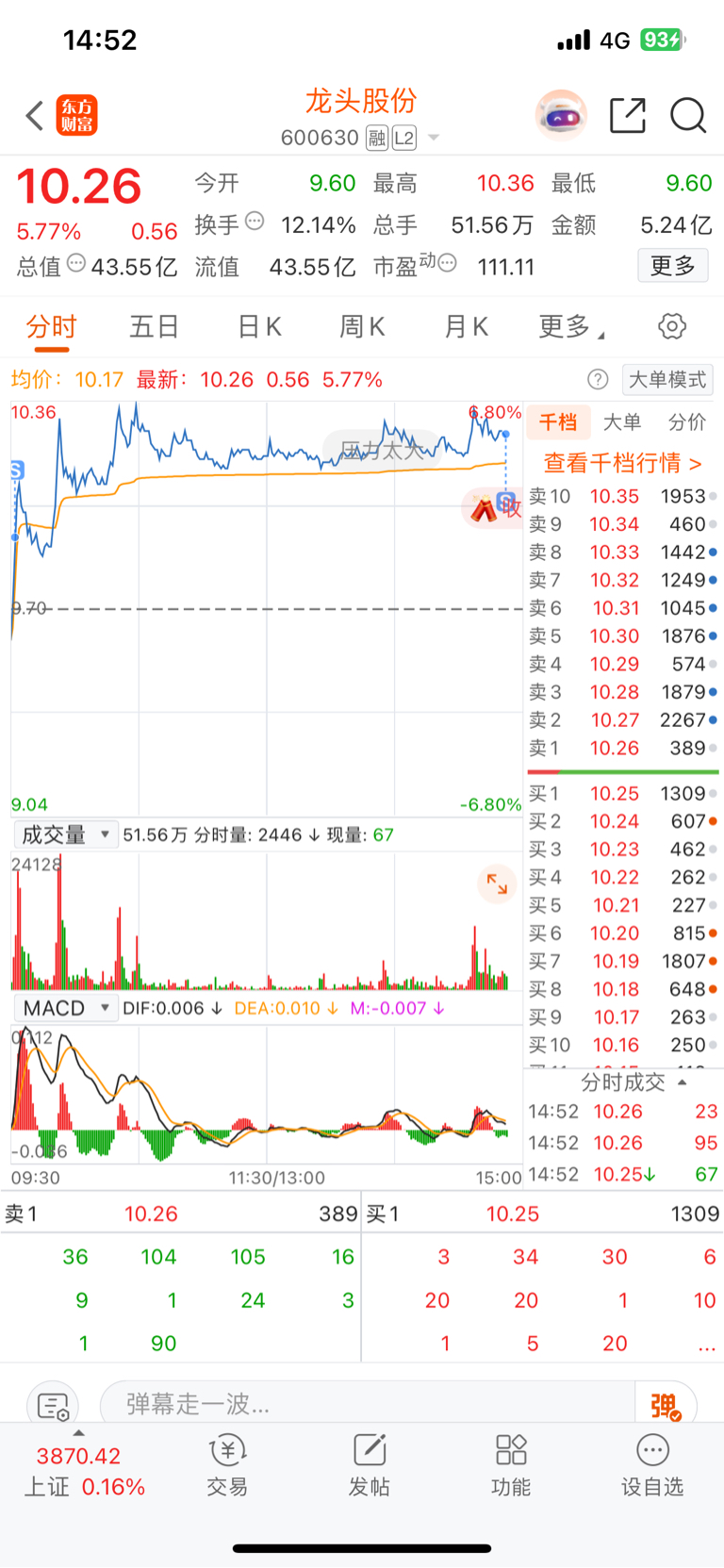$龙头股份(SH600630)$ 拉尾盘太危险了,明天大幅低开的概率极高,分两笔走了走了。