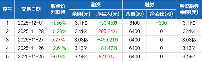 龙头股份:融资净偿还30.45万元,融资余额3.11亿元(12-01)