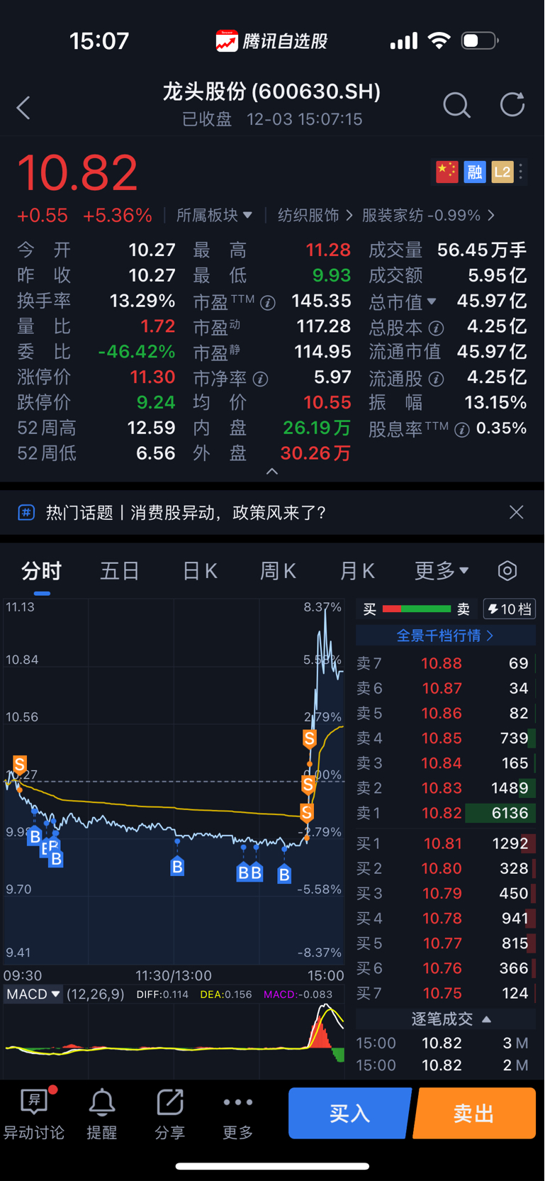 $龙头股份(SH600630)$ 挂单的,自动成交,别那么猛啊,仓位都被吃完了,还没有打满呢。主力等等我啊