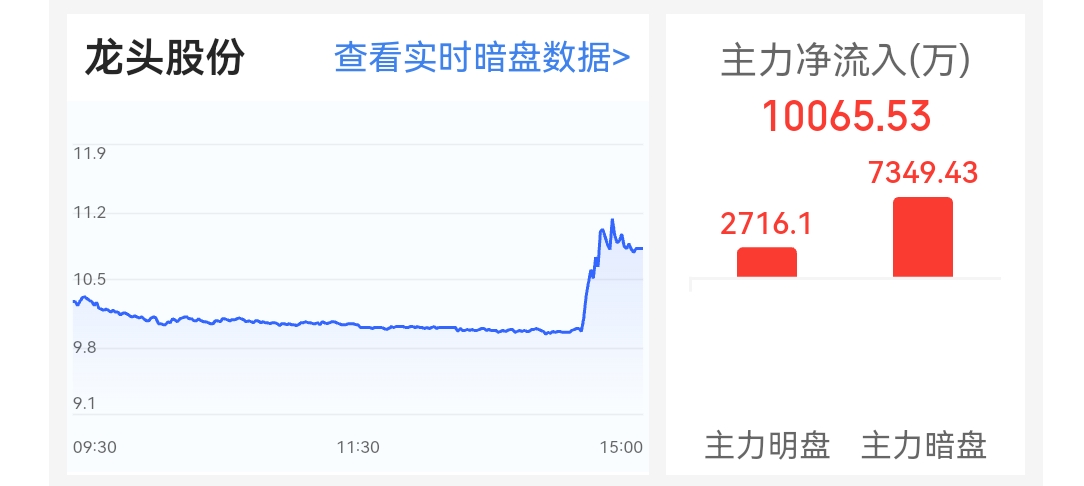 $龙头股份(SH600630)$ 暗盘资金分享