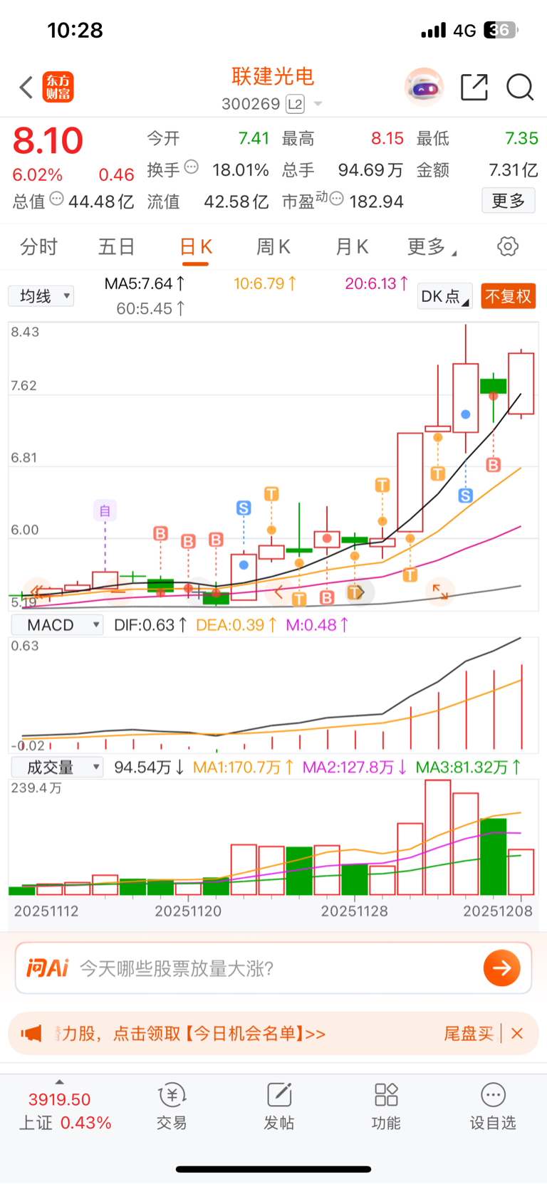 $龙头股份(SH600630)$ 强势股就是强,哪怕鱼尾行情也给你点肉吃。