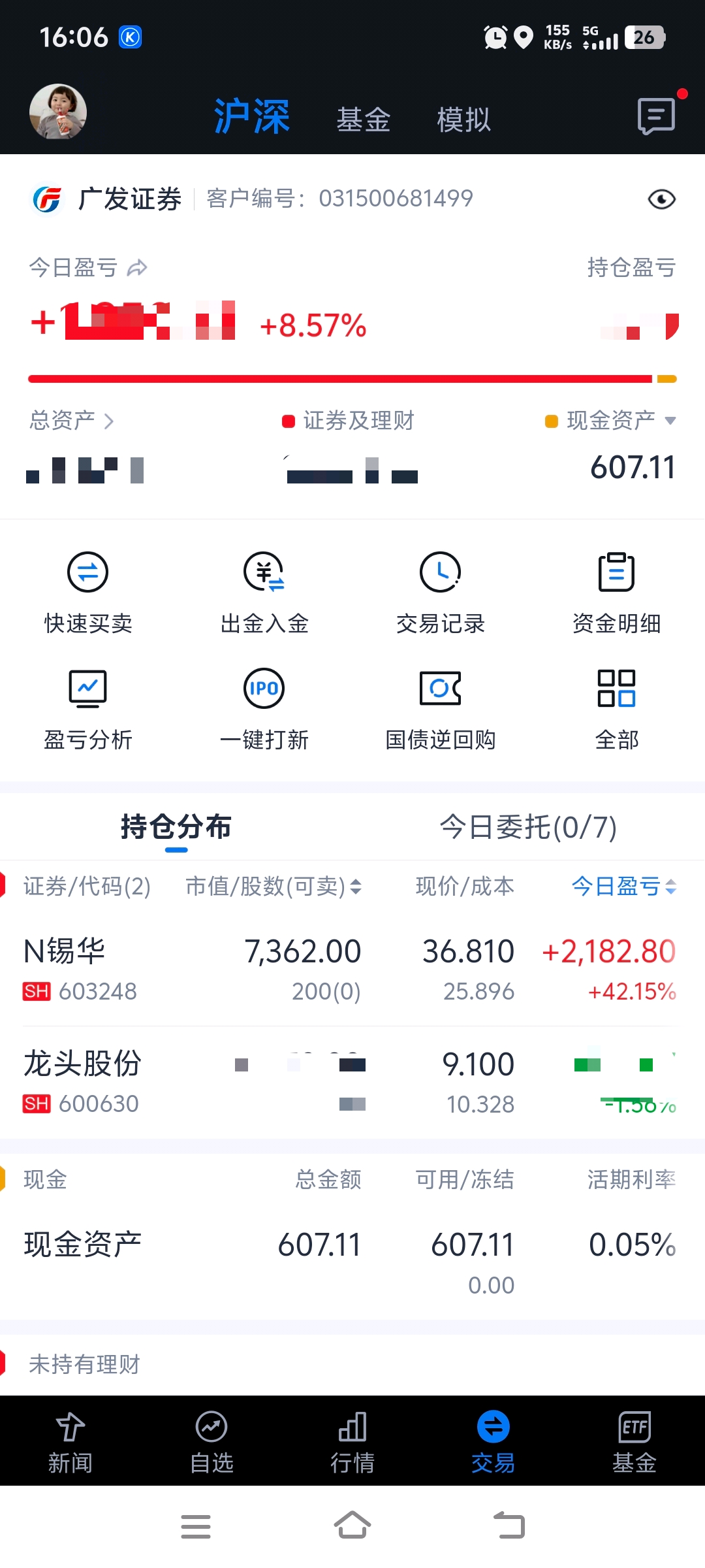 $龙头股份(SH600630)$ 彻底给我跌服了,今天出掉你一些买新股赚钱了,要不今天还是绿的