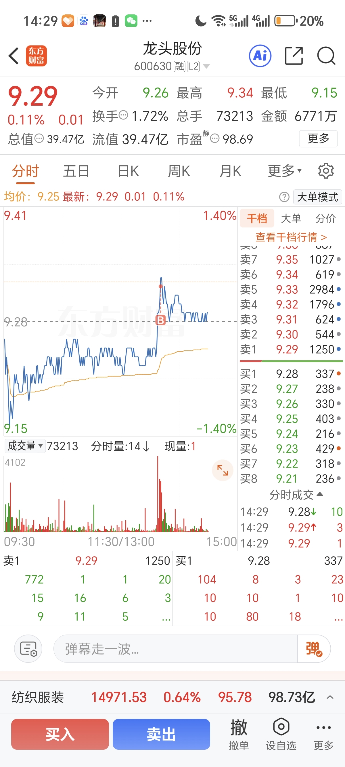 $龙头股份(SH600630)$ 对不起大家我买蹦了