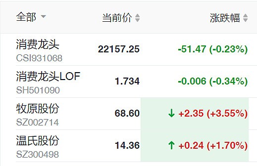 今日早盘,三大股指震荡分化,目前创业板指涨超1%。盘面上白酒、大豆、啤酒概念等板块领涨。消费龙头LOF基金——$消费龙头LOF(SH501090)$ 早盘震荡调整,重仓股牧原股份上涨3.55%,温氏股份上涨1.70%。