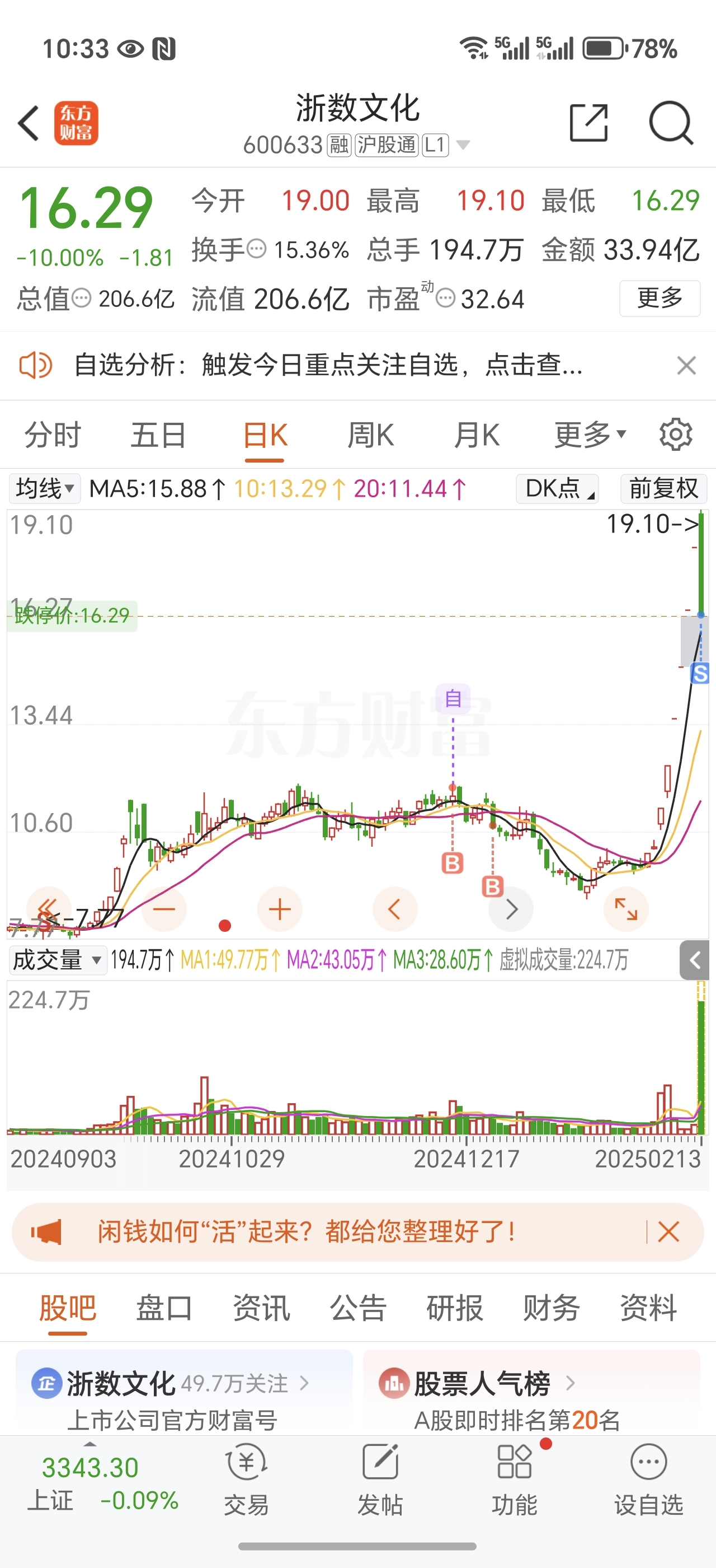 $浙数文化(SH600633)$ 痛痛痛,怎么跌停比涨停亏那么多
