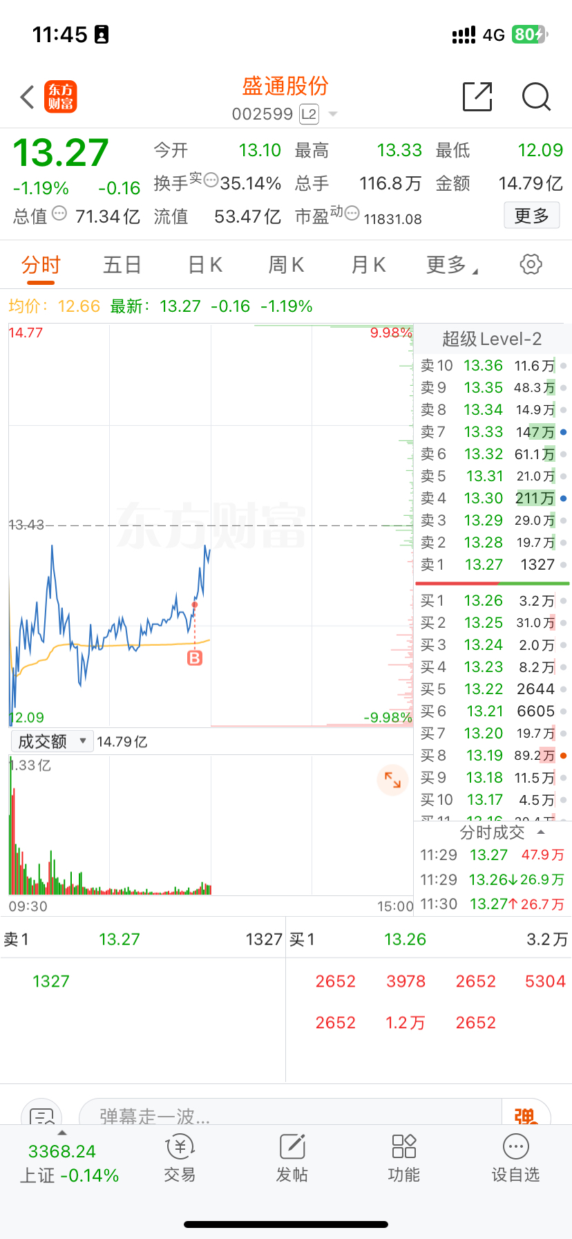 $浙数文化(SH600633)$ $盛通股份(SZ002599)$ 早上竞价开出来也太惨了,接回拓维,卖飞巨轮,经典每日一卖飞,午盘踏空感十足,追了点盛通,下午准备割了浙数,看看有没有高点出掉,垃圾一个