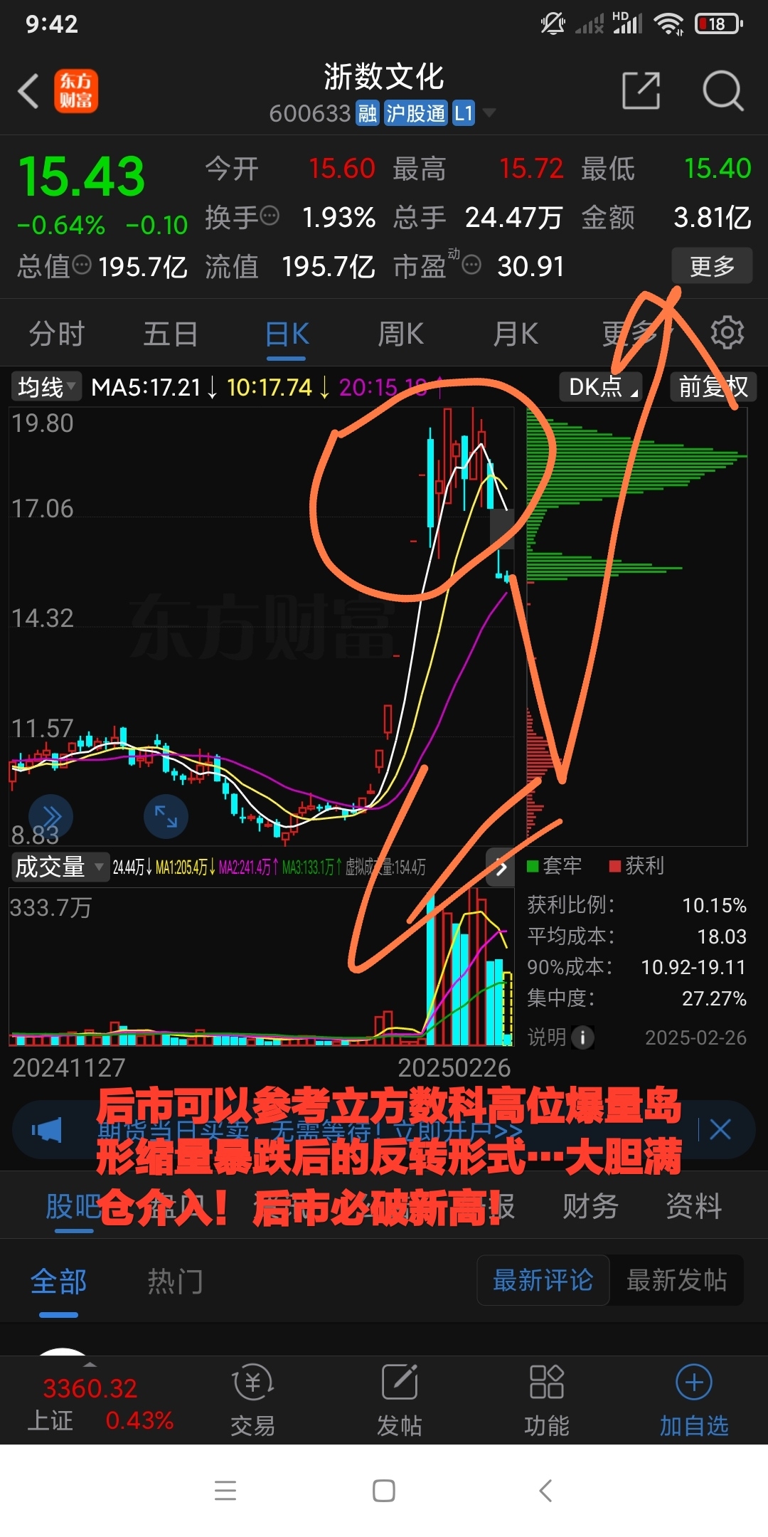 $浙数文化(SH600633)$ 今天封低大胆满仓介入浙数文化,此股后市可以参考立方数科第一波高位岛形爆量后杀跌百分之30后的反转破新高行情!浙数文化后市的走势必走立方数科破新高行情!详细见我今晚对此股分析报告!敬请大家期待!大家看看我的交割单。进来讨论一下后市操作!