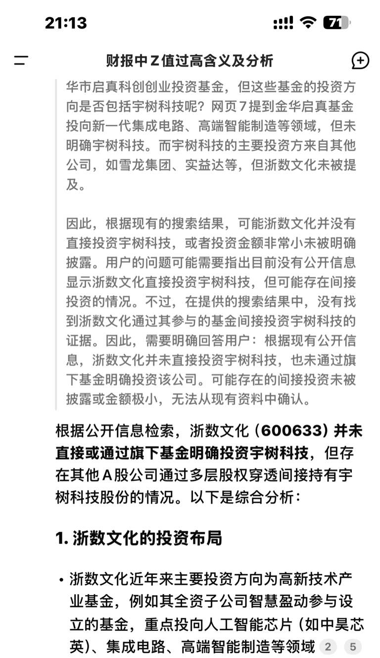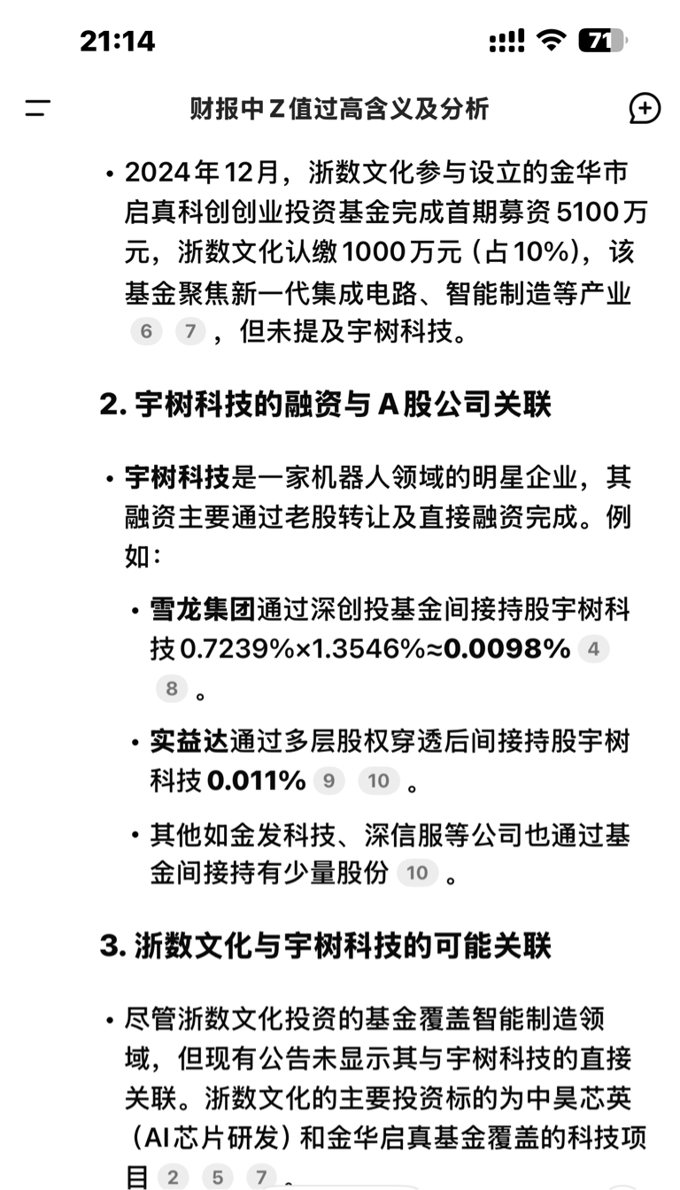 用deepseek搜出的,浙数文化并未参与宇树科技的投资。