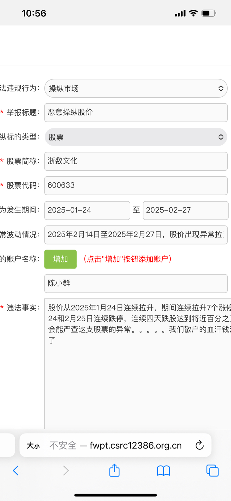 $浙数文化(SH600633)$ 一说要举报吧里的托就拼命发言,把举报的帖子压下去,大家一起举报。他们在安抚我们。这是主力和游资惯用的套路,他们已经割了我们,利用托在吧里给我们信心,稳住我们,吧里的散户们联合起来一起举报,登录证监会官网,点击互动交流,注册一个账户,然后点击我要举报,没有的材料,就写没有,要上传图片证据,没有就随便上传一张图片就可以了。我已经举报完成了。。。。。