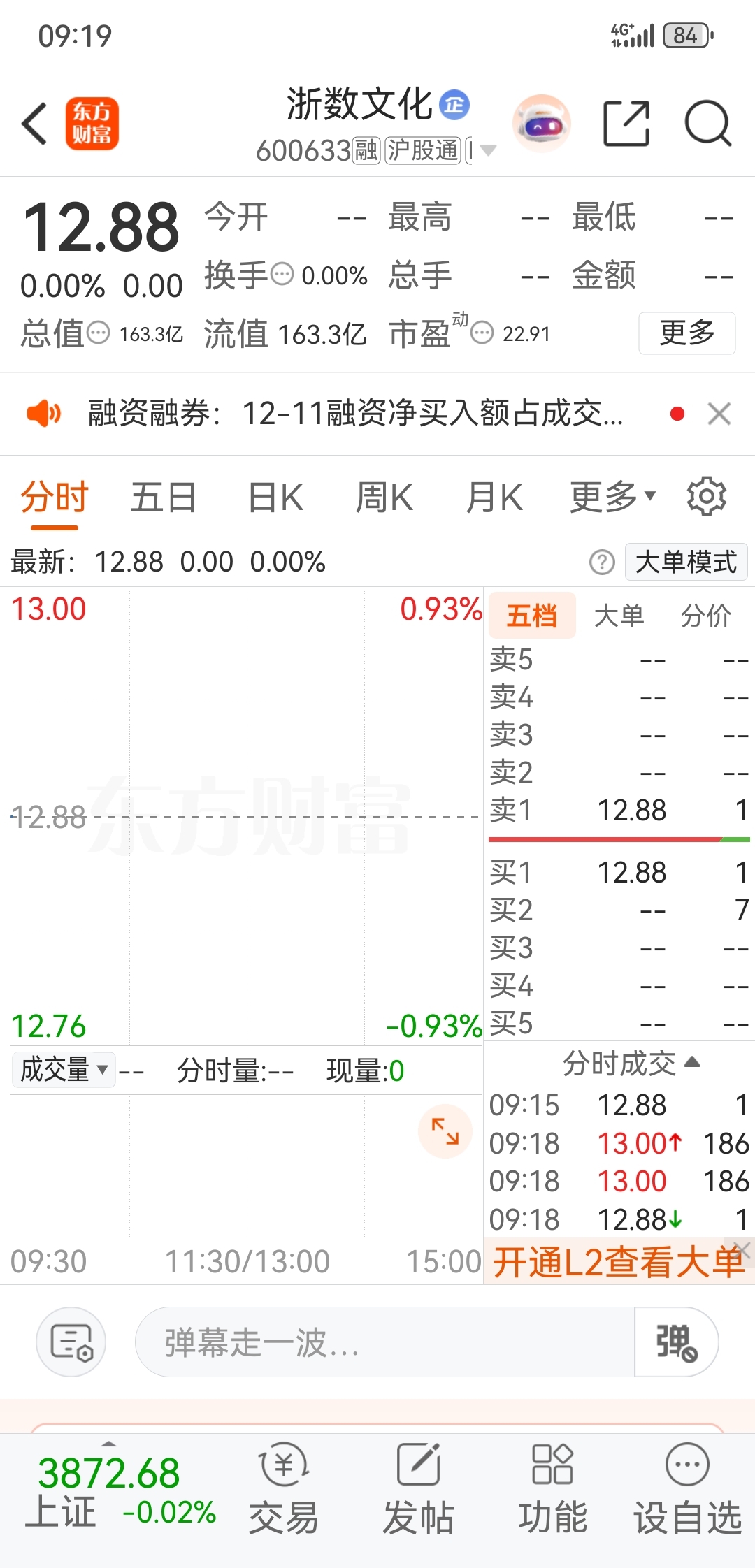 $浙数文化(SH600633)$ 这个竞价说明了啥?还有人玩吗?