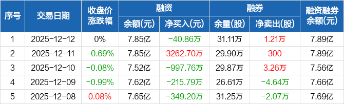 浙数文化:融资净偿还40.86万元,融资余额7.85亿元(12-12)