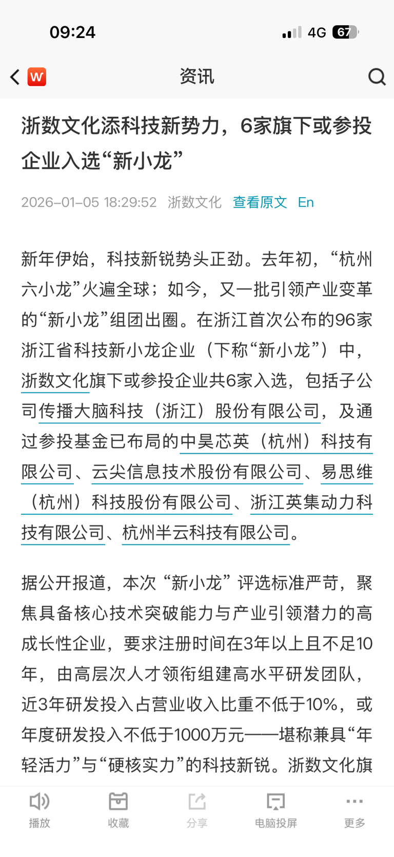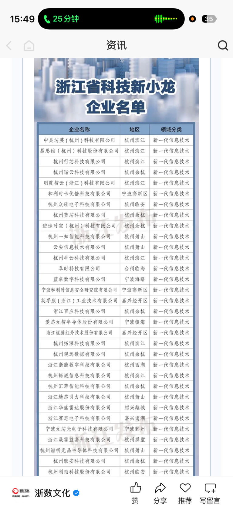 浙数文化添科技新势力,6家旗下或参投企业入选“新小龙”