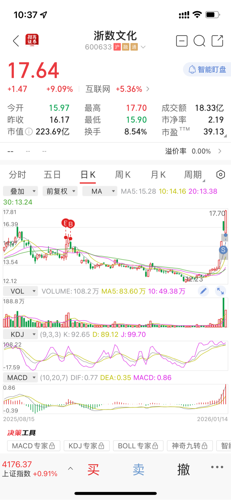 $浙数文化(SH600633)$ 死拿了70多天,盈利就走了,小散就不格局了,留下的继续发财。