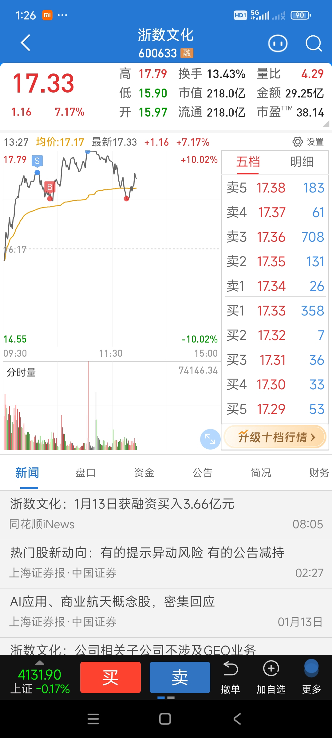 $浙数文化(SH600633)$