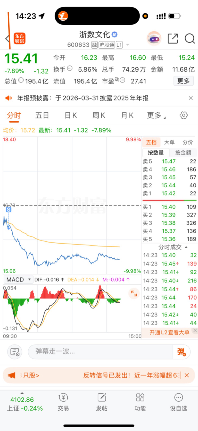 $浙数文化(SH600633)$ 我卖的必回调15个点