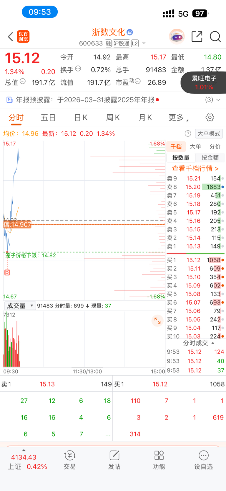 $浙数文化(SH600633)$ 慢点