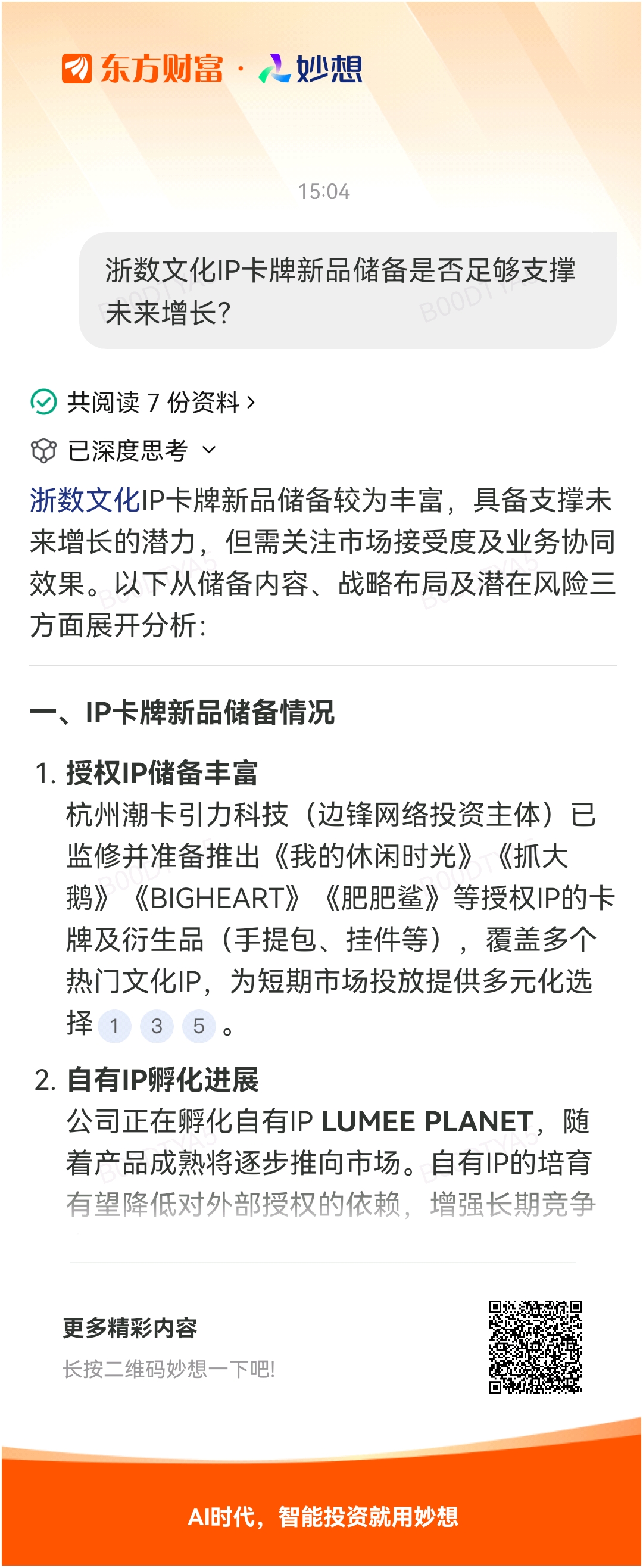 #@妙想,你怎么看?# 妙想一下:浙数文化IP卡牌新品储备是否足够支撑未来增长?