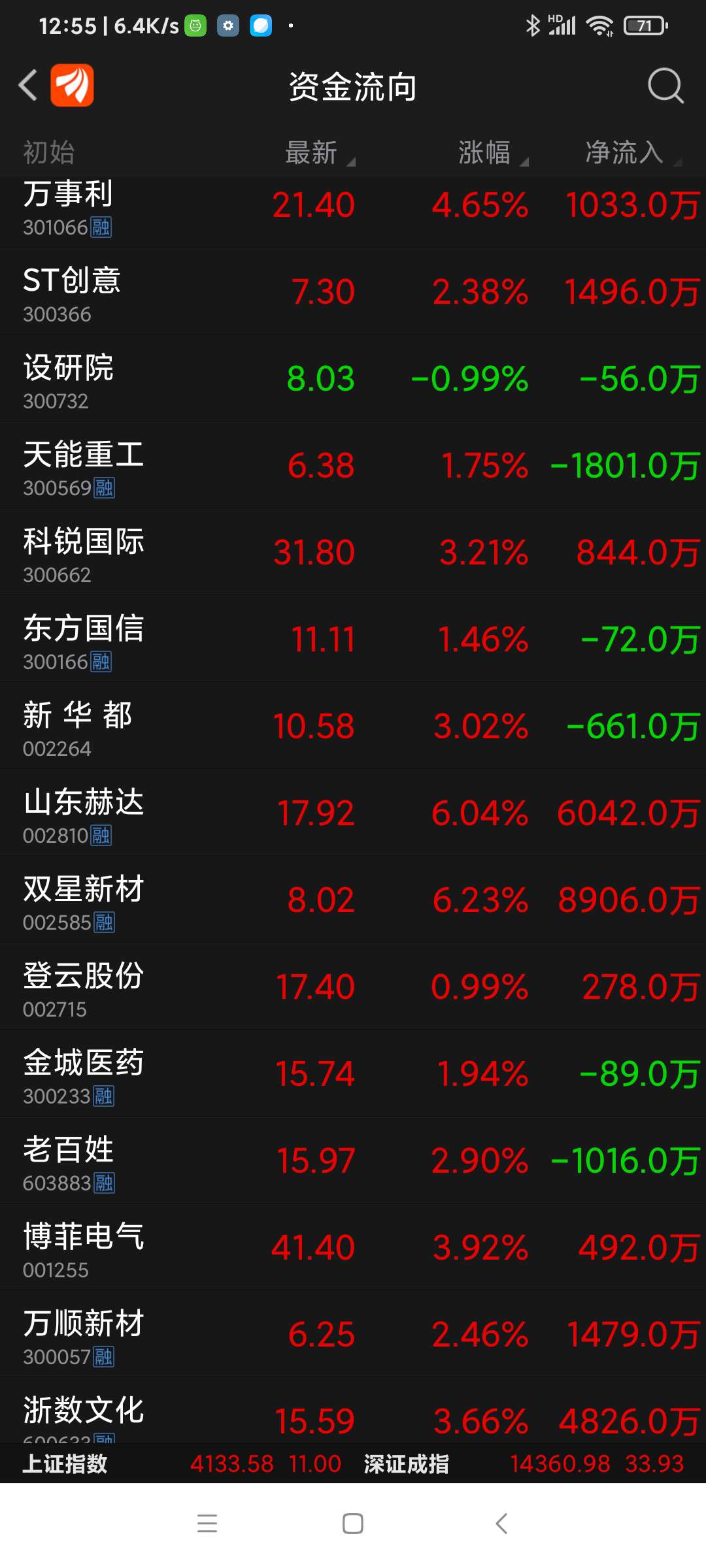 今日上午,浙数文化等八股资金净流入一览。