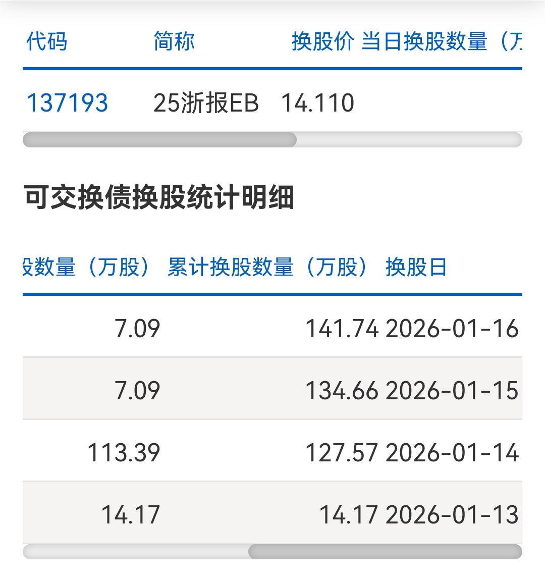 截至2026年1月23日,25浙报EB(137193)的公开换股数据如下 :