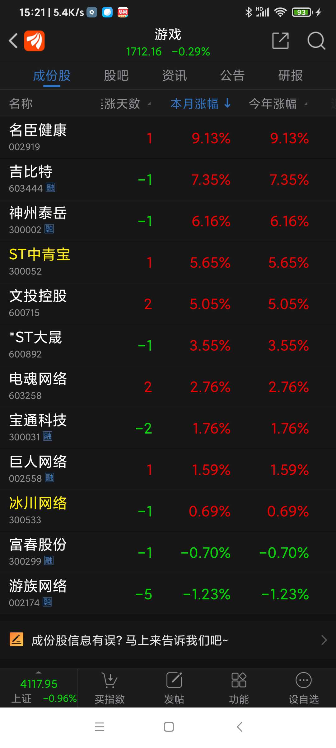 游戏板块26年元月涨幅10.54%,浙数文化列涨幅第三。