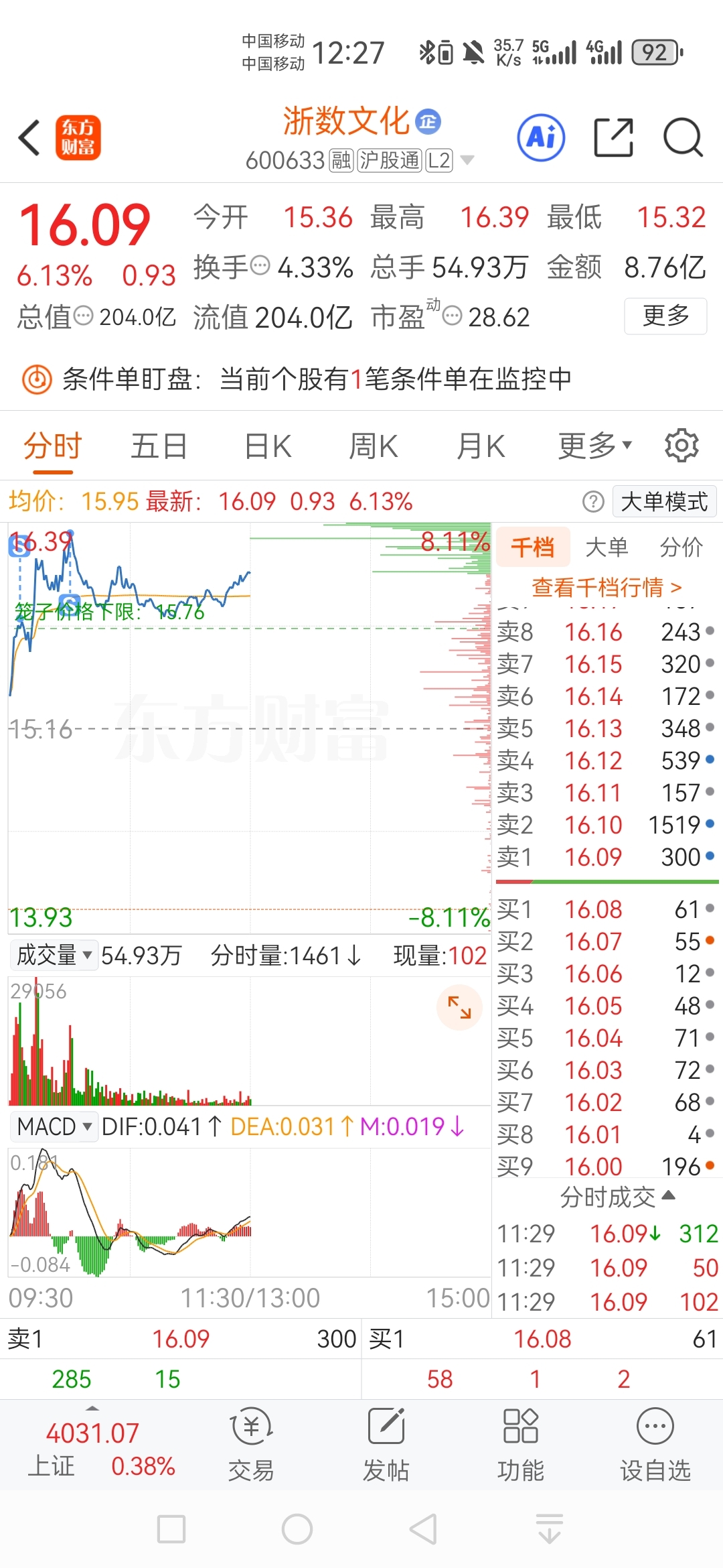 $浙数文化(SH600633)$ 卖飞了,一单查一分钱没有接回来。