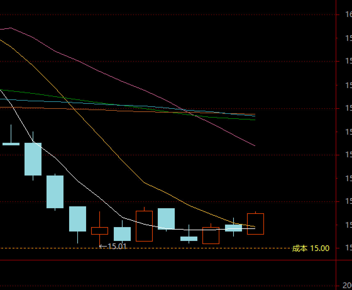 我摊牌了,今天我控盘的,因为我成本15元,最低只能打到15.01元,不能跌破我的成本。