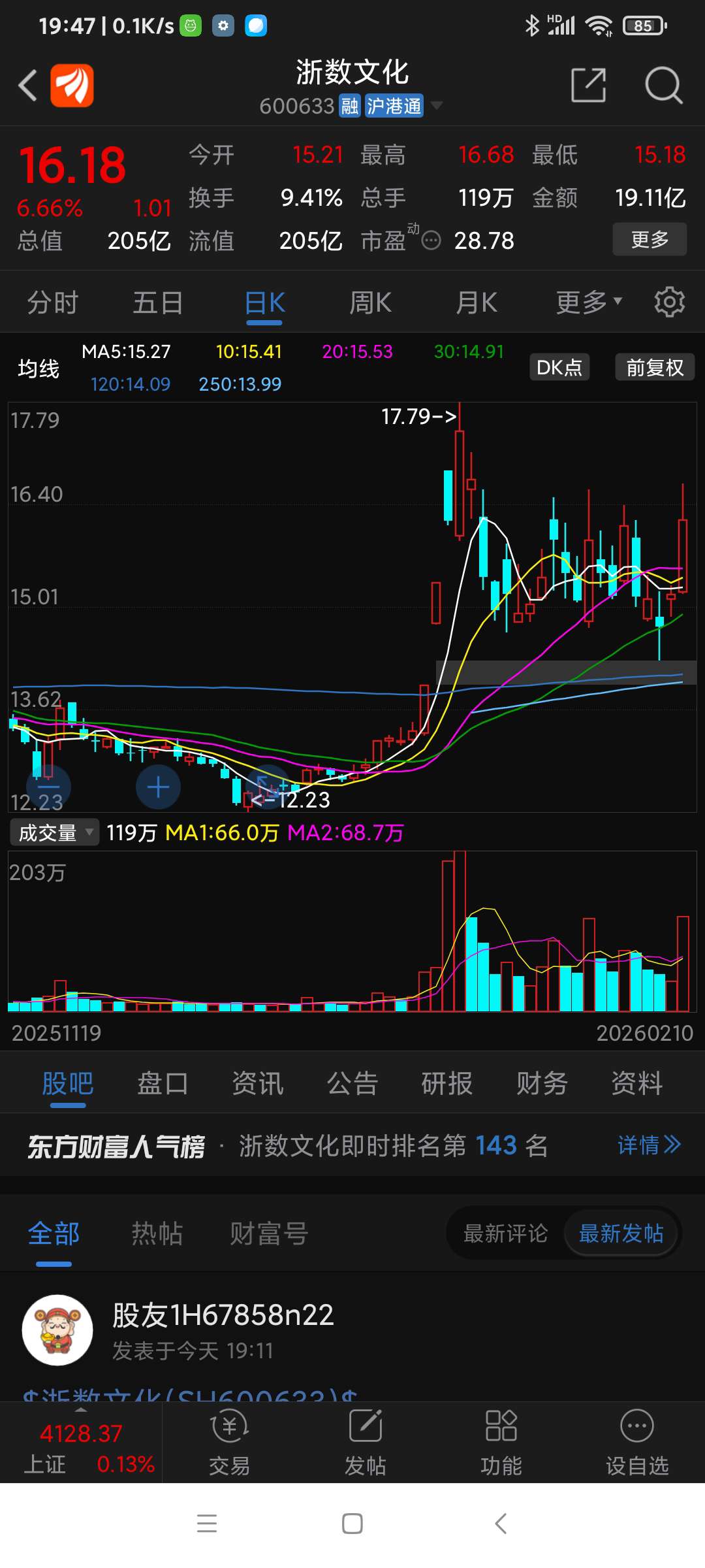 浙数文化,低调了几天,今日主力发力终于小赚,然后买入连跌两天的山东赫达(估计一两