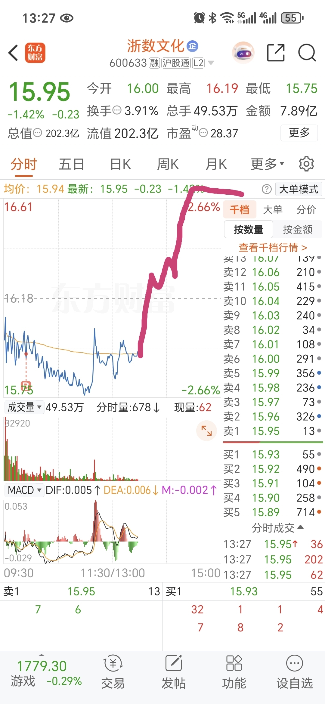 $浙数文化(SH600633)$