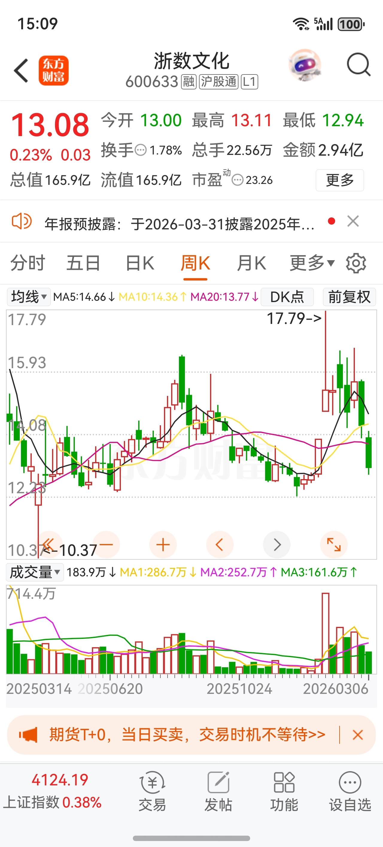 $浙数文化(SH600633)$ 这周的周线虽然没有留下相下的跳空缺口,但图形看起来好像是向下的岛行反转。到底是挖坑还是重新来过,下一周基本可以明确了。如果重新来过,按该股的尿性,下跌幅度到不一定很大,但时间上够所有人喝一壶的。