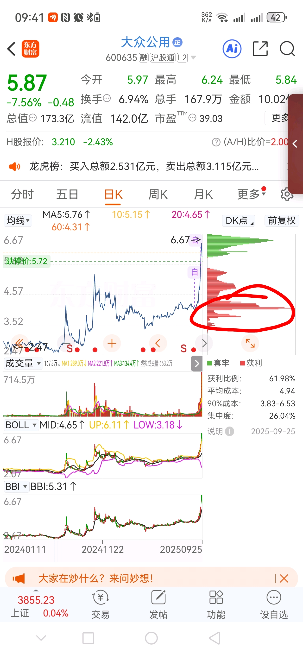$大众公用(SH600635)$ 底部筹码堆积的还在,主力控盘,今天洗盘为主,逢高出货,今天是加仓机会。