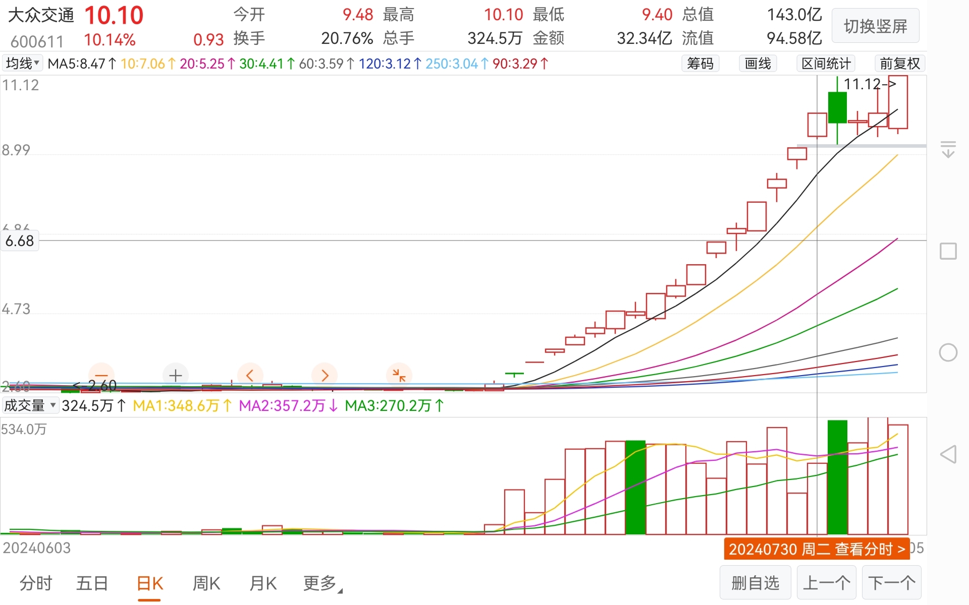 看着大众公用H股两天就冲50%,赶紧找同一家基因的大众交通研究了几分钟,2024年7月的大众交通