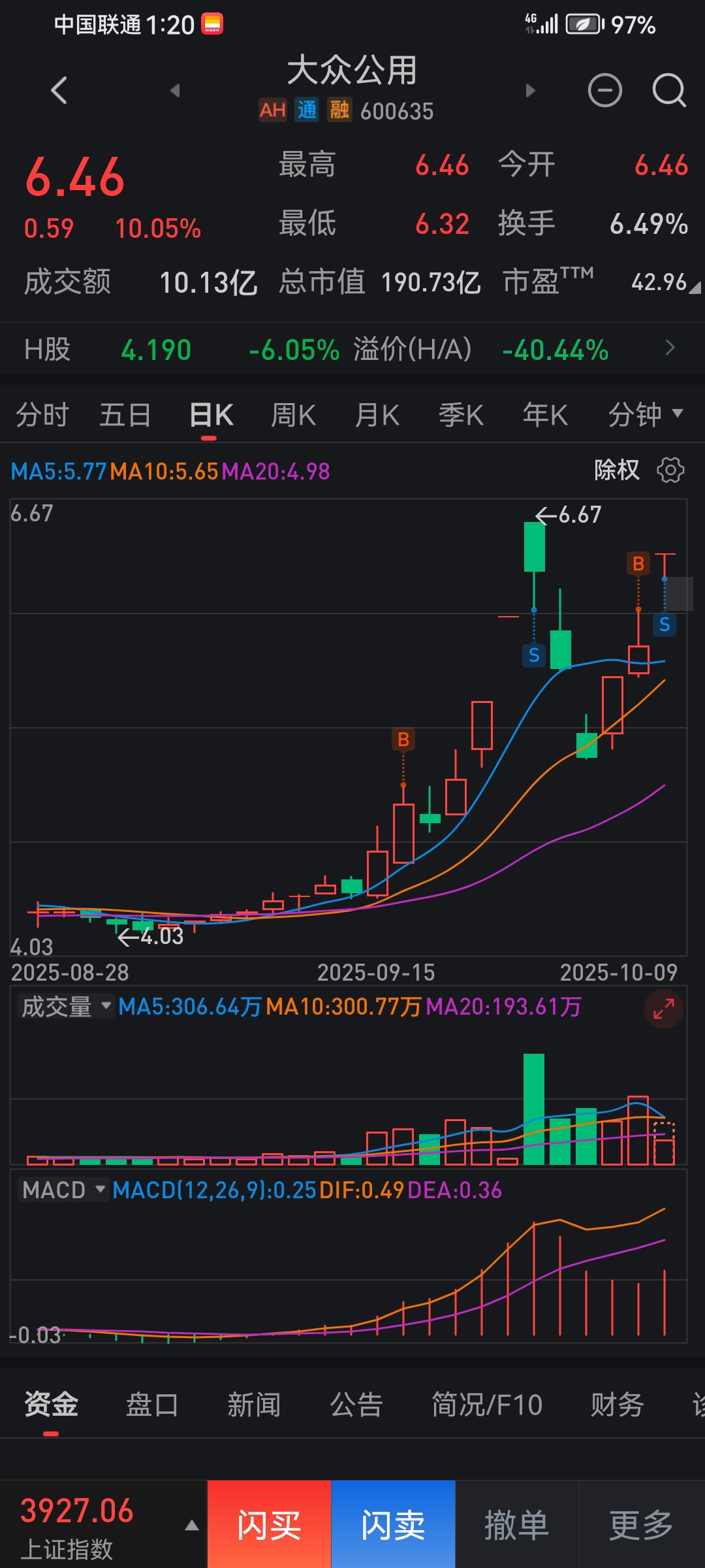 $大众公用(SH600635)$ 虽然有卖飞的可能,但是知足了最近几年最成功的一次操作!