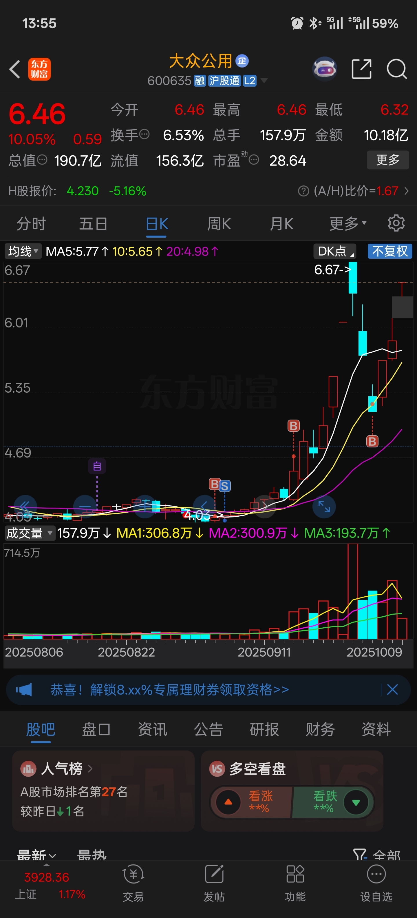 $大众公用(SH600635)$ 很好很强大