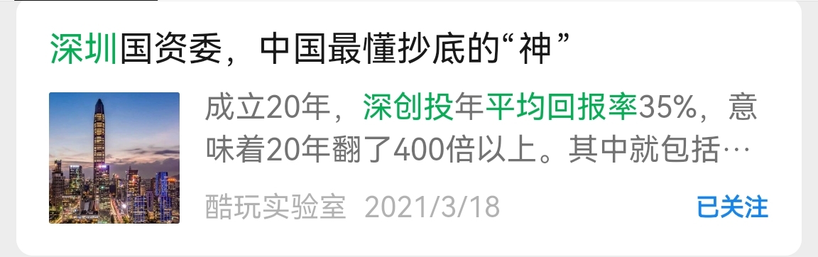 20年的后的今天,深创投管理200万亿规模的资金,那个时候每年20%的收益率,那个时候深创投价值300万亿,,而大众交通持有14%-18%的股权,那大众交通持有深创投的股权价值42万亿-50万亿,现在H股和A股总市值才275亿,我就按42万亿来算,股价是现在的1500倍