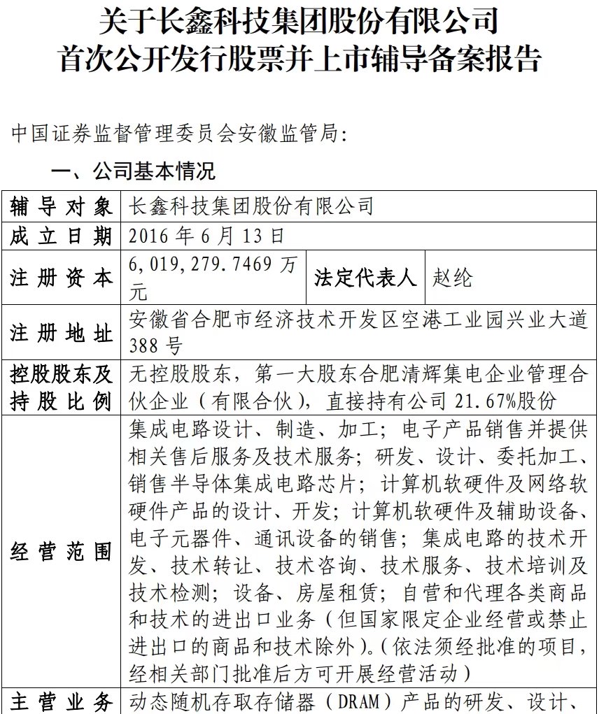 长鑫存储,启动IPO辅导,预计年底报IPO。