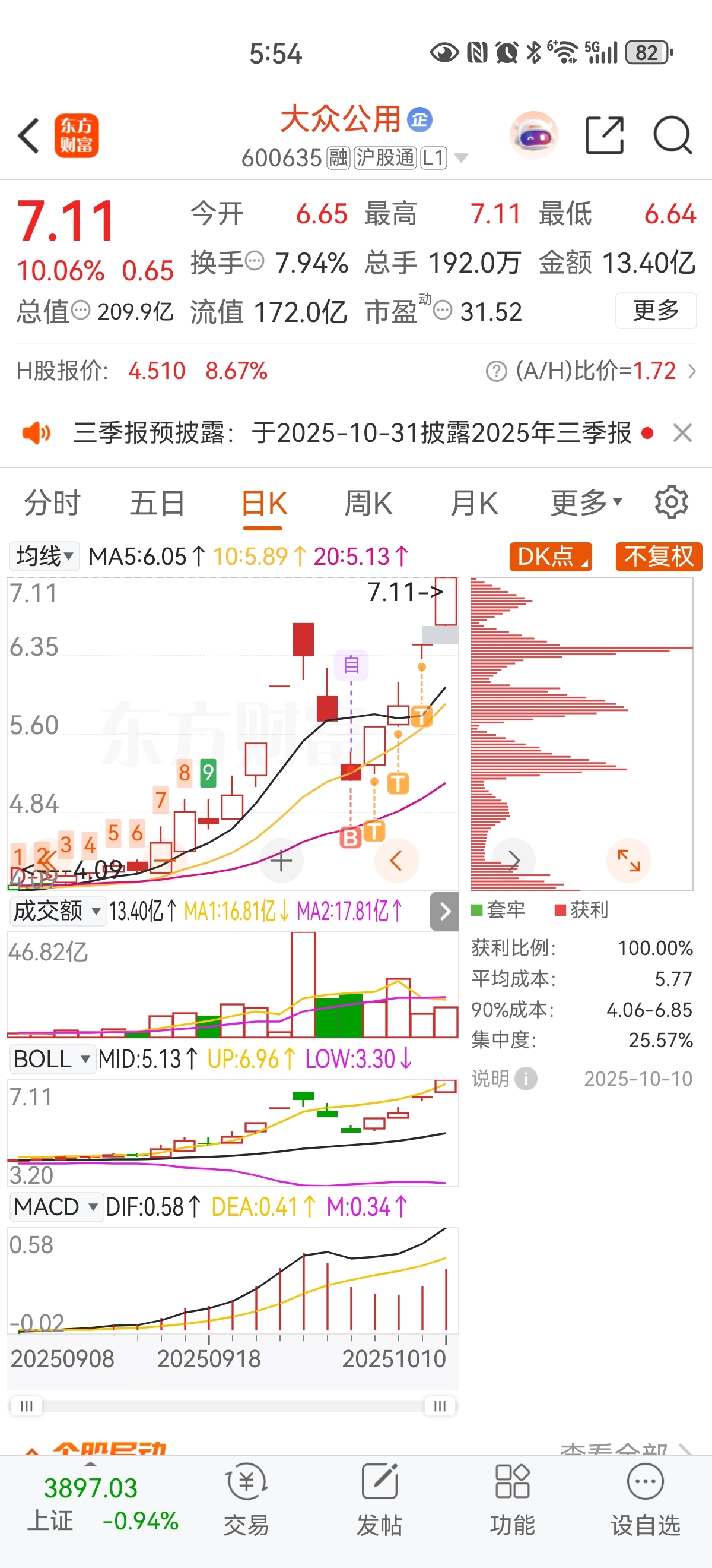 $大众公用(SH600635)$ 感谢天感谢地感谢财神爷感谢股神感谢世间所有的生命总算抓住了一只牛股