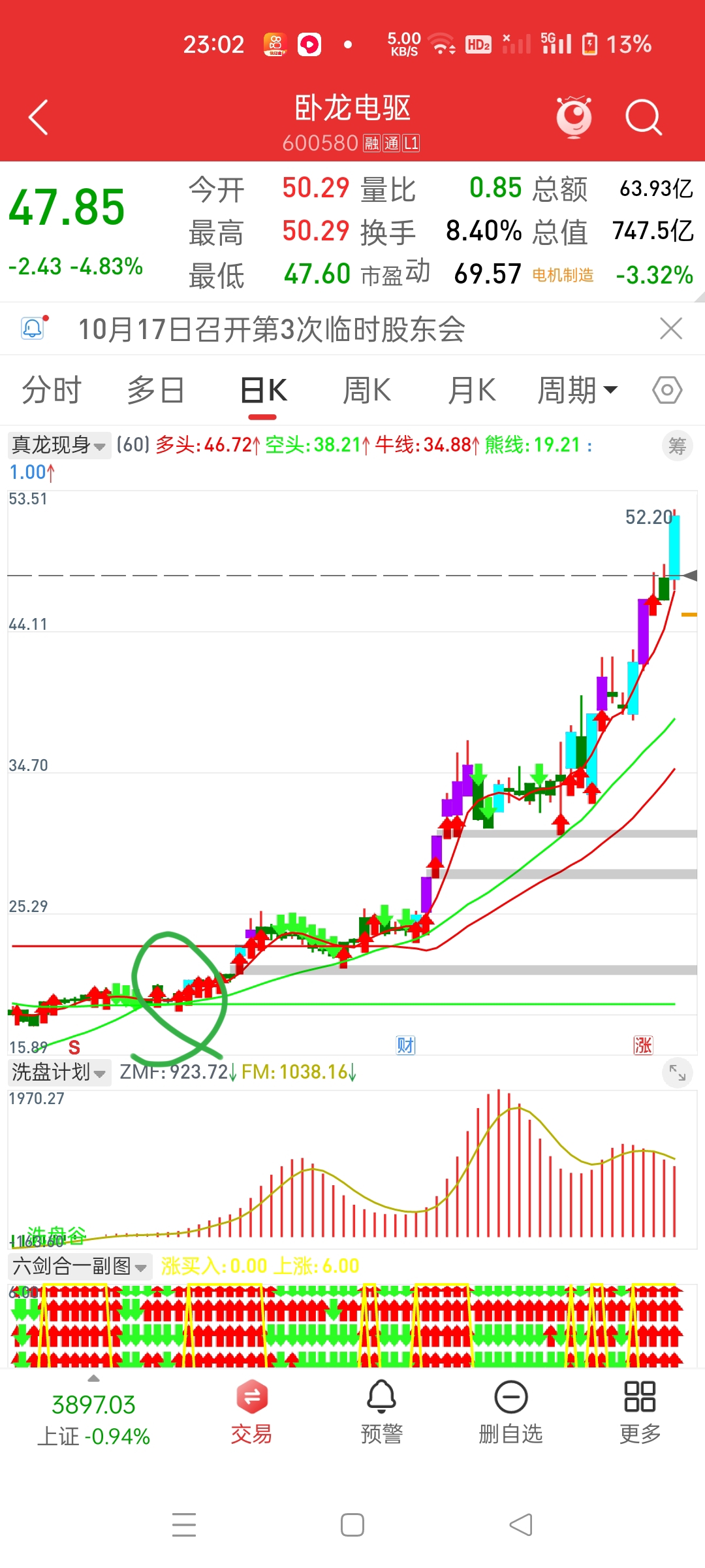 卧龙电驱和千里科技,自从低位建仓起,也成功翻两倍,只要蓝色标注出现就放心拿着,别