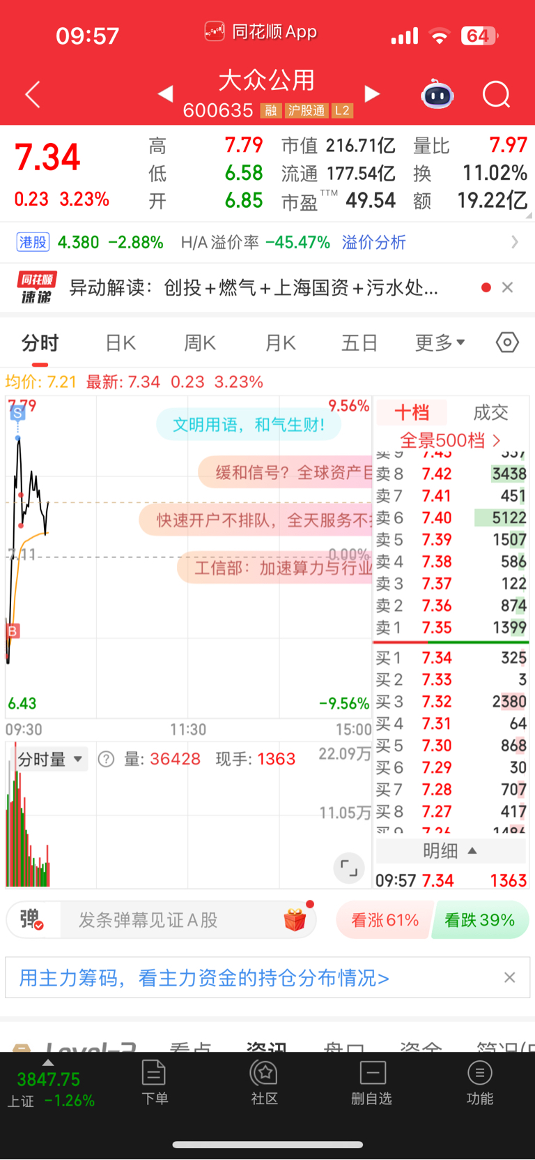$大众公用(SH600635)$ 星期四的板全是量化,今天开这么低,看好的人肯定是和量化一起T,今天估计涨停不了了,走趋势也是可以的