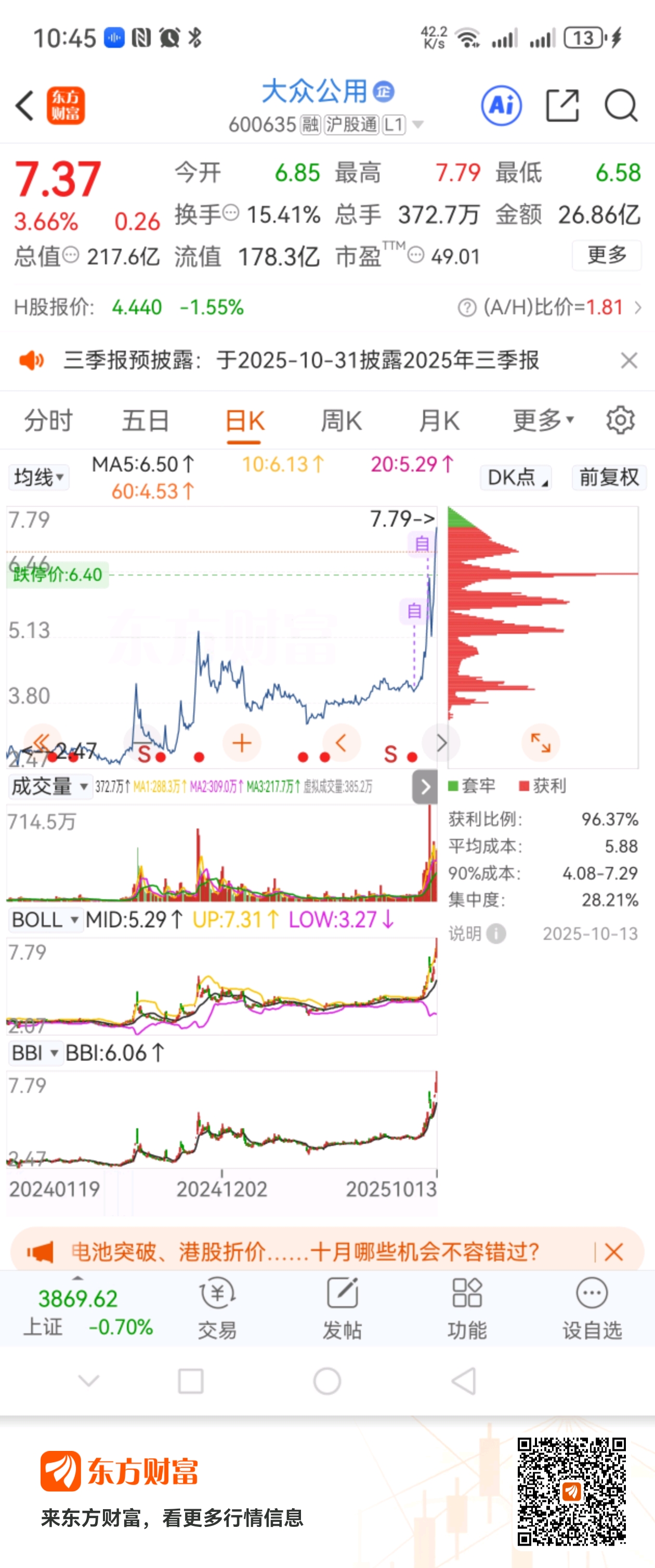 #炒股日记# $大众公用(SH600635)$ 继续看好,开盘就加仓了。前面几天我都有提示,安心持有。主力不跑我不跑。继续跟着主力吃肉。