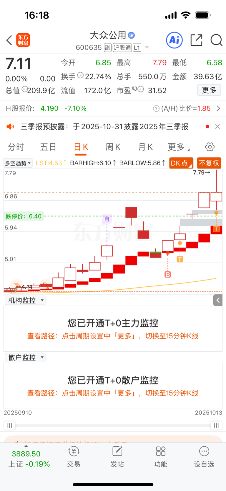$大众公用(SH600635)$ 尾盘出了三分之二