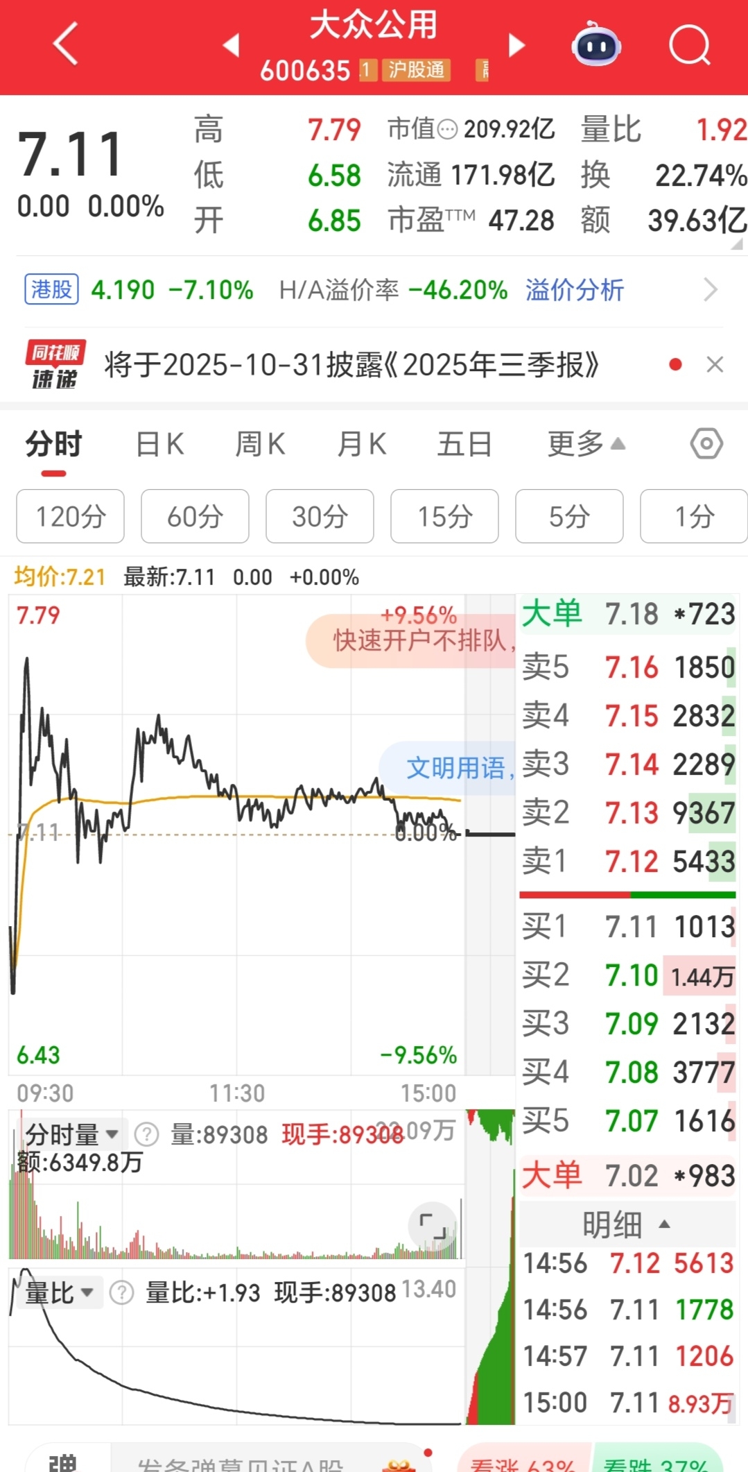 $大众公用(SH600635)$ 明天或许低开几点,再拉红,零轴上下振荡,给足机会今天犹豫不决,还懊悔着高位未走的人走,该走的定会嚷着走。