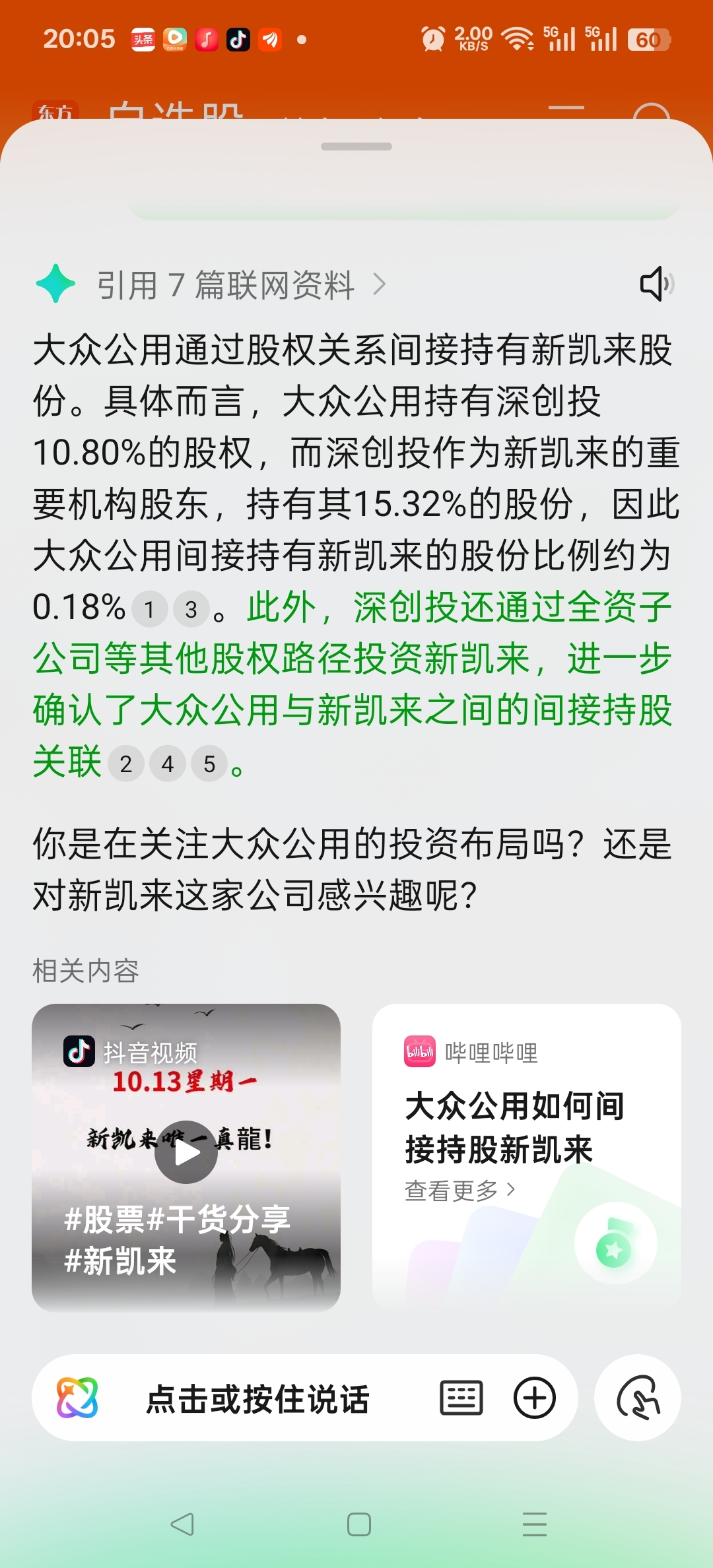 优质投资概念,大众公用间接持有@新凯莱光刻机0.18股份,间接持有宇树科技0.1