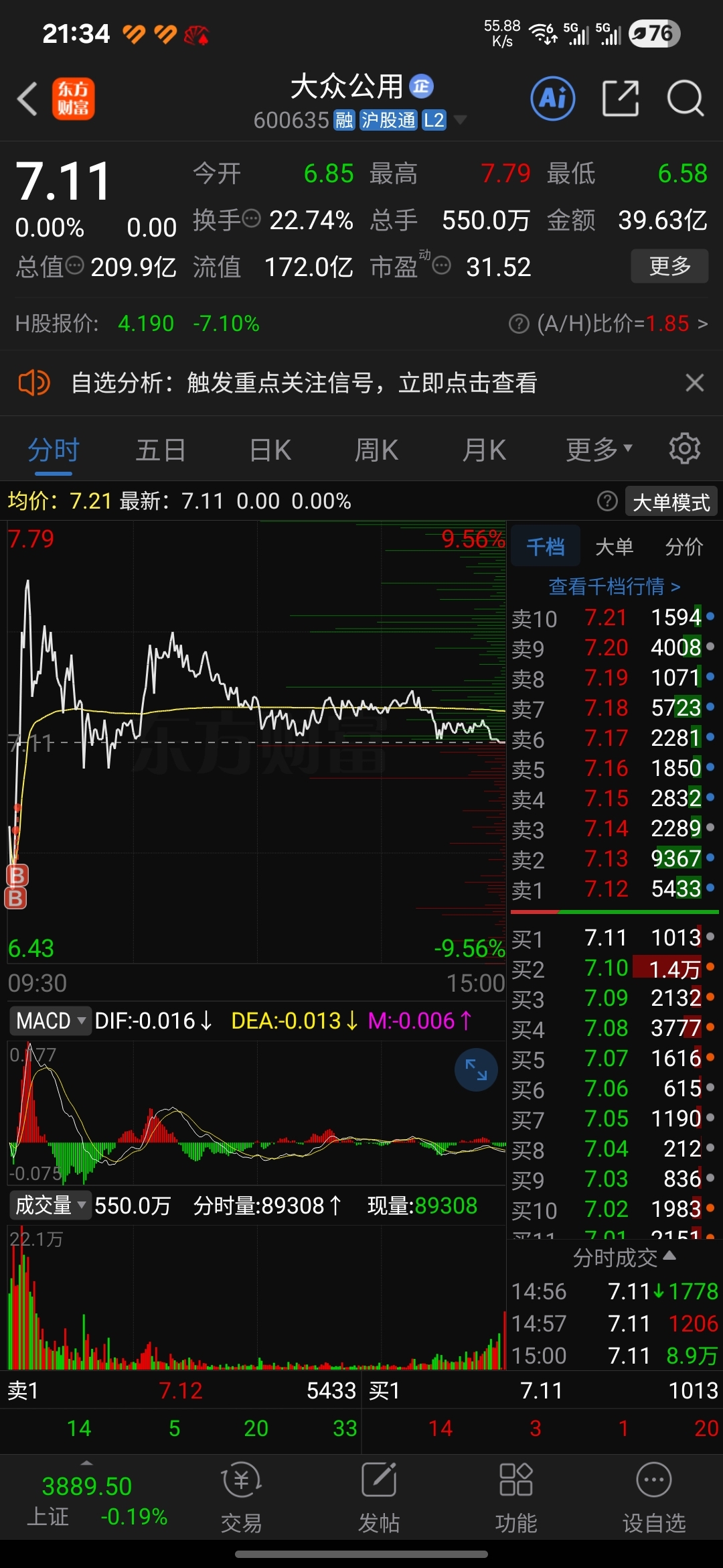 $大众公用(SH600635)$ 家人们明天还有戏么